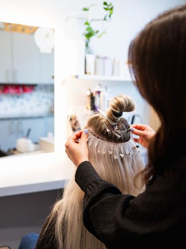 Invisible Bead Extension® is an unique and luxurious hand-tied extension method. Behind an Invisible Bead Extension® certification is education like no other. The IBE® technique and hair ensures complete comfort, no damage, and styling versatility. So if you're here looking for the best of the best of extensions that no one can see, you can barely feel, and you'll love every day, you're here!